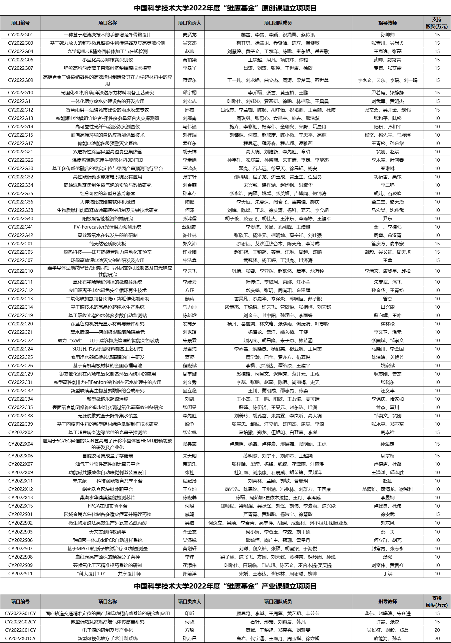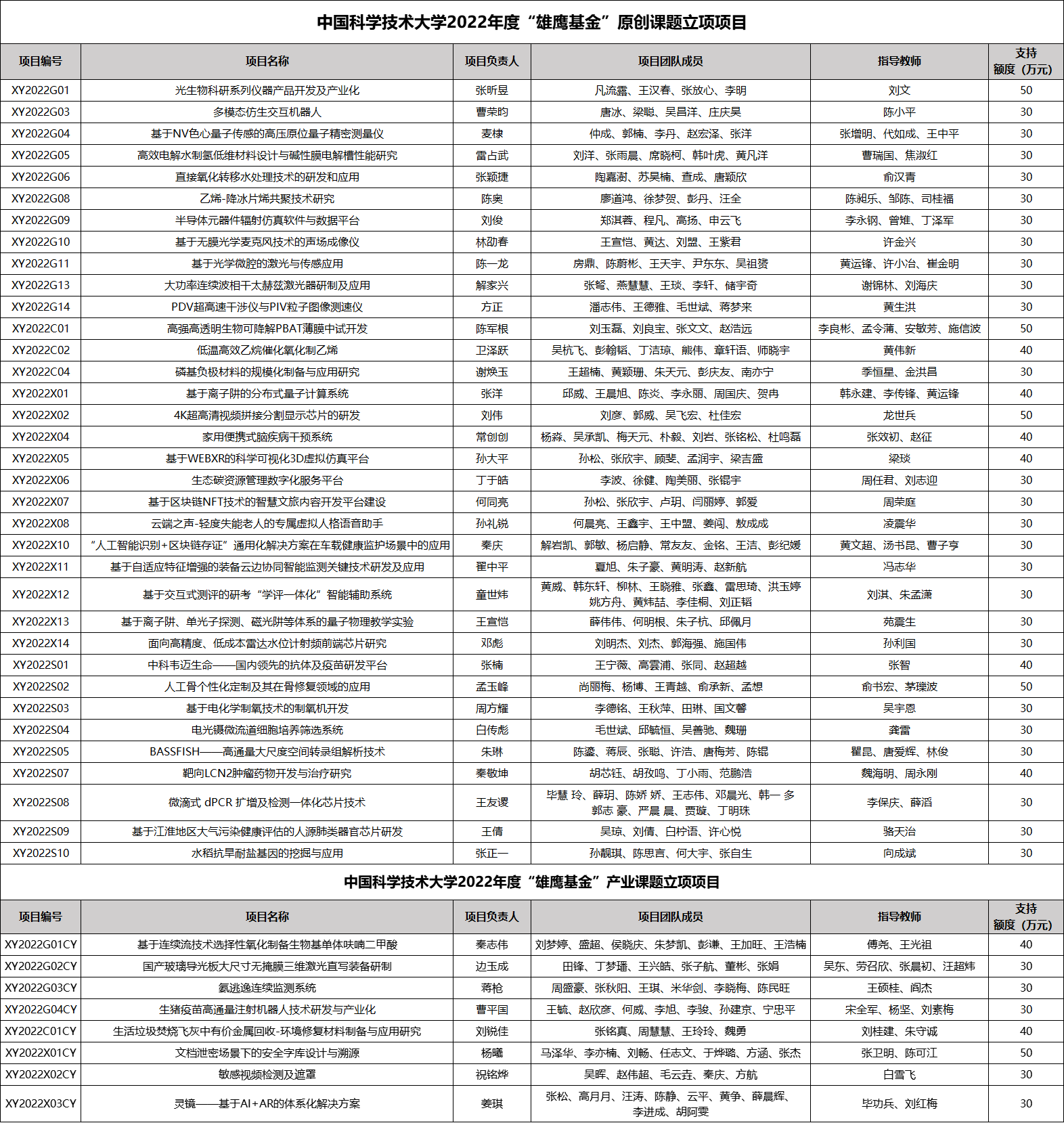 附件2:中國科學技術大學2022年度“雄鷹基金”立項項目