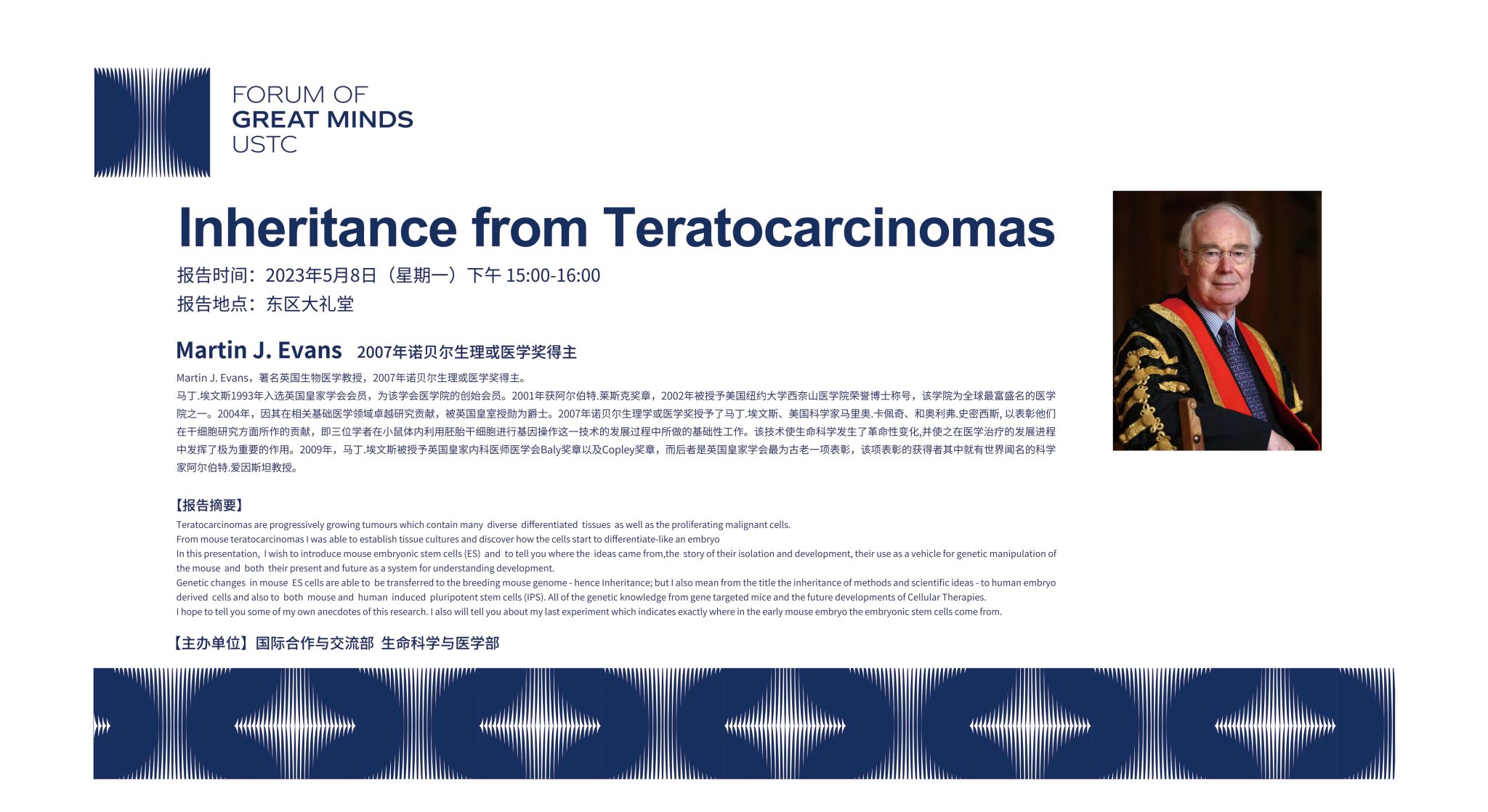 應(yīng)學(xué)校邀請(qǐng),著名英國生物醫(yī)學(xué)家、2007年諾貝爾生理或醫(yī)學(xué)獎(jiǎng)得主Martin J. Evans教授將于2023年5月8日來校作“Inheritance from Teratocarcinomas”學(xué)術(shù)報(bào)告。