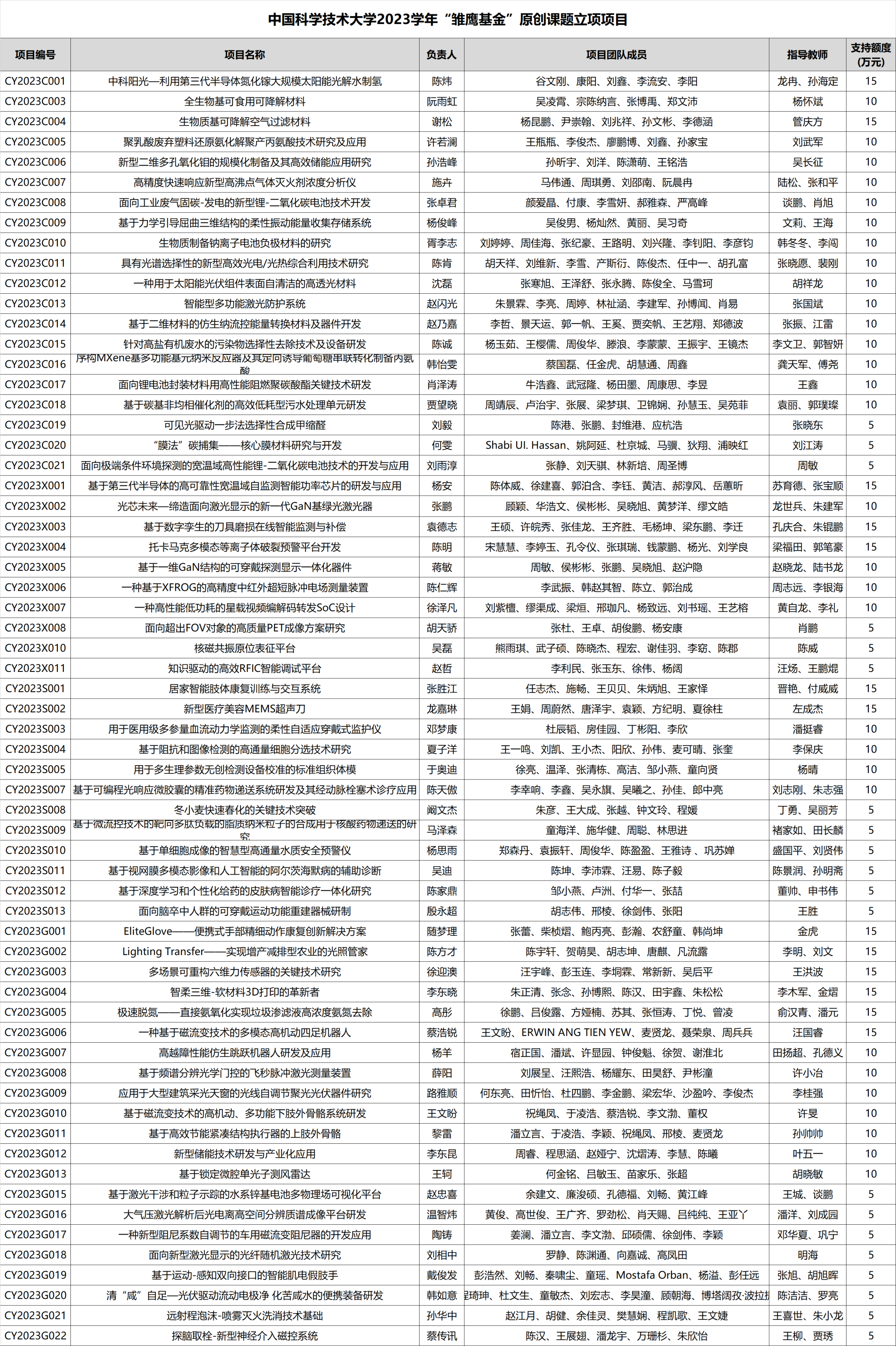 中國科學技術大學2023學年“雛鷹基金”立項項目