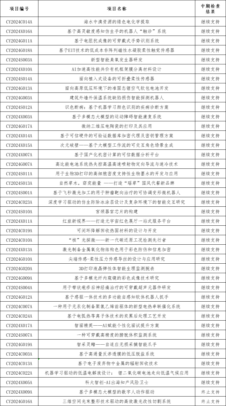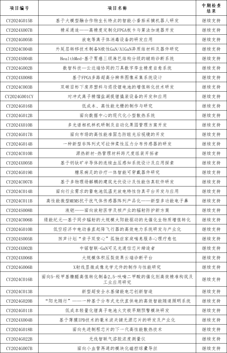 按照工作安排,根據《關于開展2024學年“雛鷹基金”、“雄鷹基金”中期檢查的通知》要求,經材料提交、走訪核實、二次復核及專家評審,確定“基于極大望遠鏡邊緣傳感器的關鍵技術研究”等136個“雛鷹基金”項目作為繼續支持項目;確定“基于WGM微腔的窄線寬激光器研發與產業化”等37個“雄鷹基金”項目作為繼續支持項目。現將中期檢查結果公布如下: