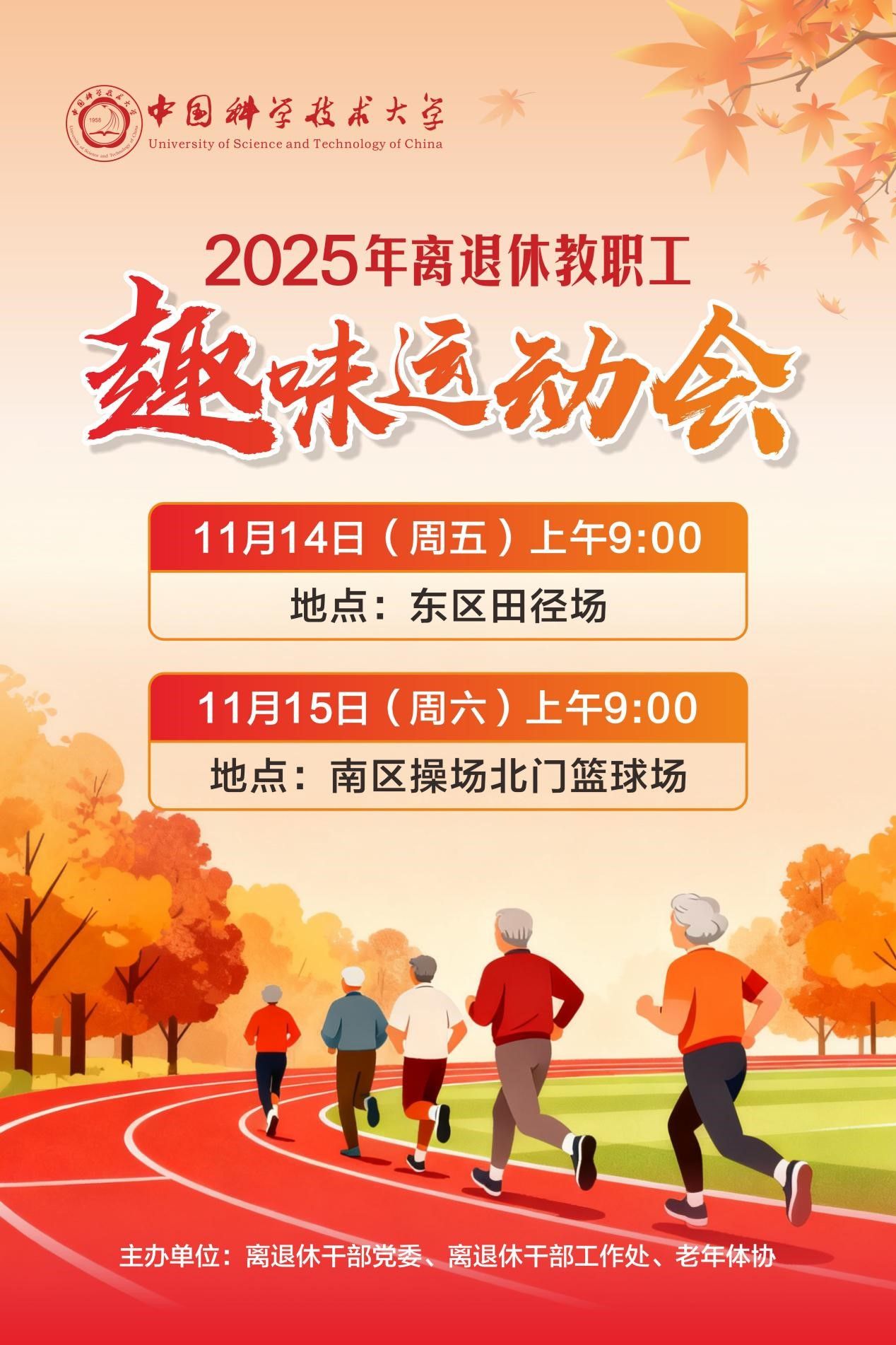歡迎廣大離退休教職工秉持安全第一、自愿參與的原則,結合自身身體狀況量力而行、積極參加!